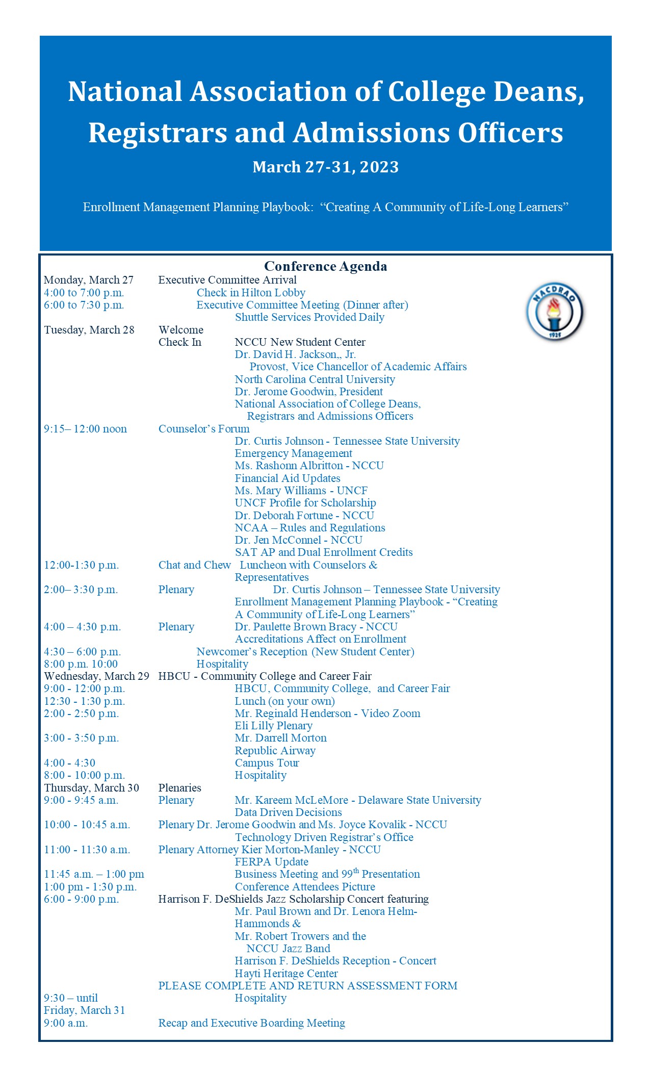 North Carolina Central University , 98th NACDRAO Annual Conference , Contact: nacdrao.org@gmail.com